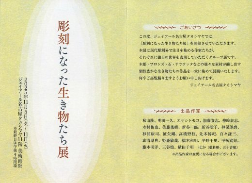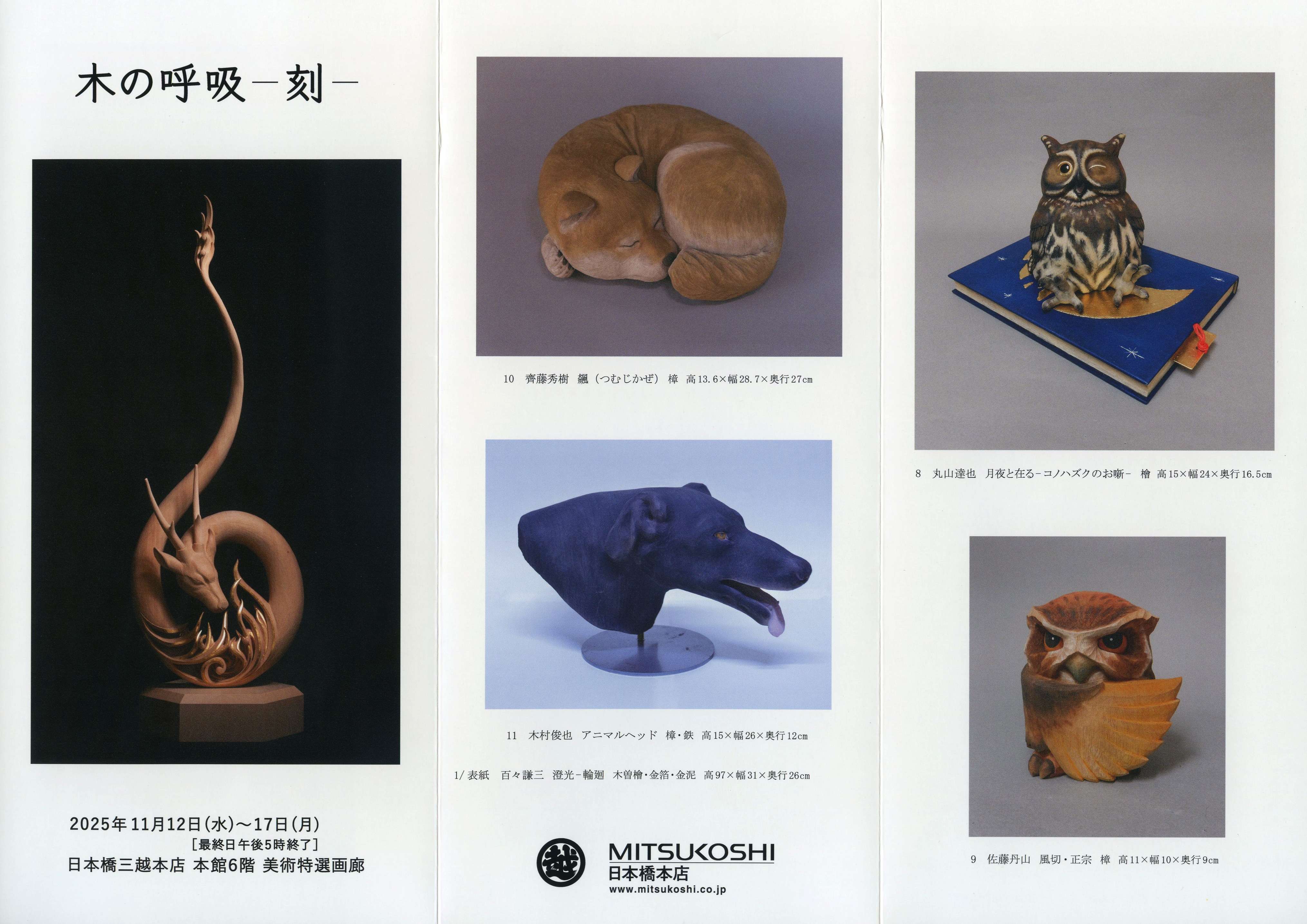 一緒に展示される他の作家さんの顔ぶれを見ましても、現代の木彫家の中ですでに存在感を持ち始めてきたことは工房主としてもとても嬉しいことです。