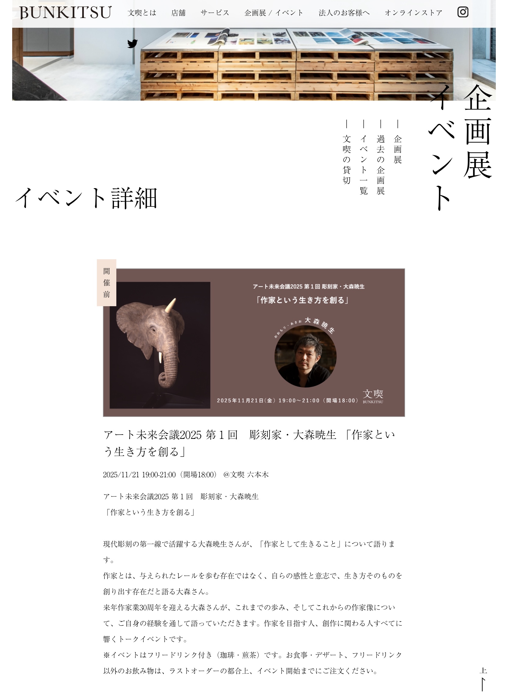 11月21日(金)19:00より、文喫六本木(旧青山ブックセンター跡)にて『アート未来会議2025』を開催、第1回目のゲストとして大森暁生が登壇いたします。