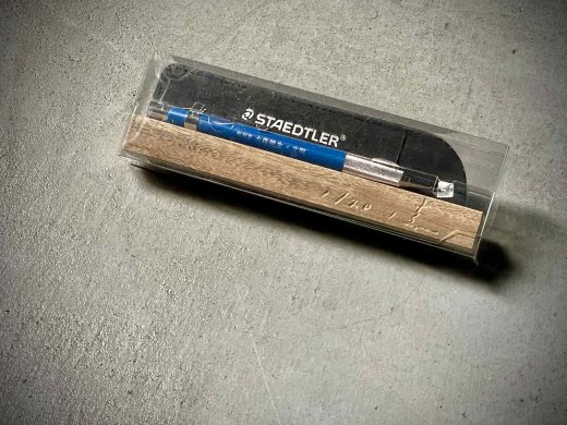 このシャープペンシル、1978年に誕生した名作で、青い軸にメタルのグリップはいかにもステッドラーを象徴するデザインで、現代の製図用シャープペンシルにまで続くスタンダードです。