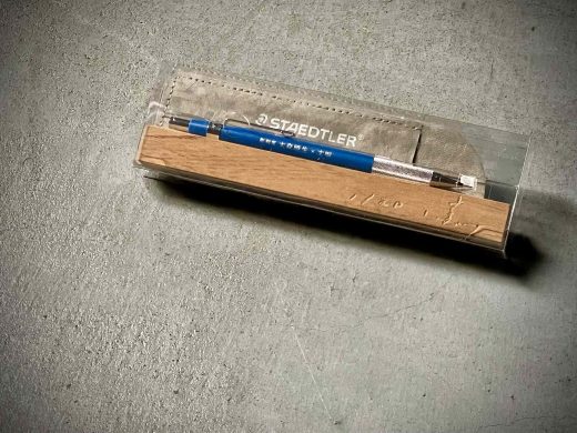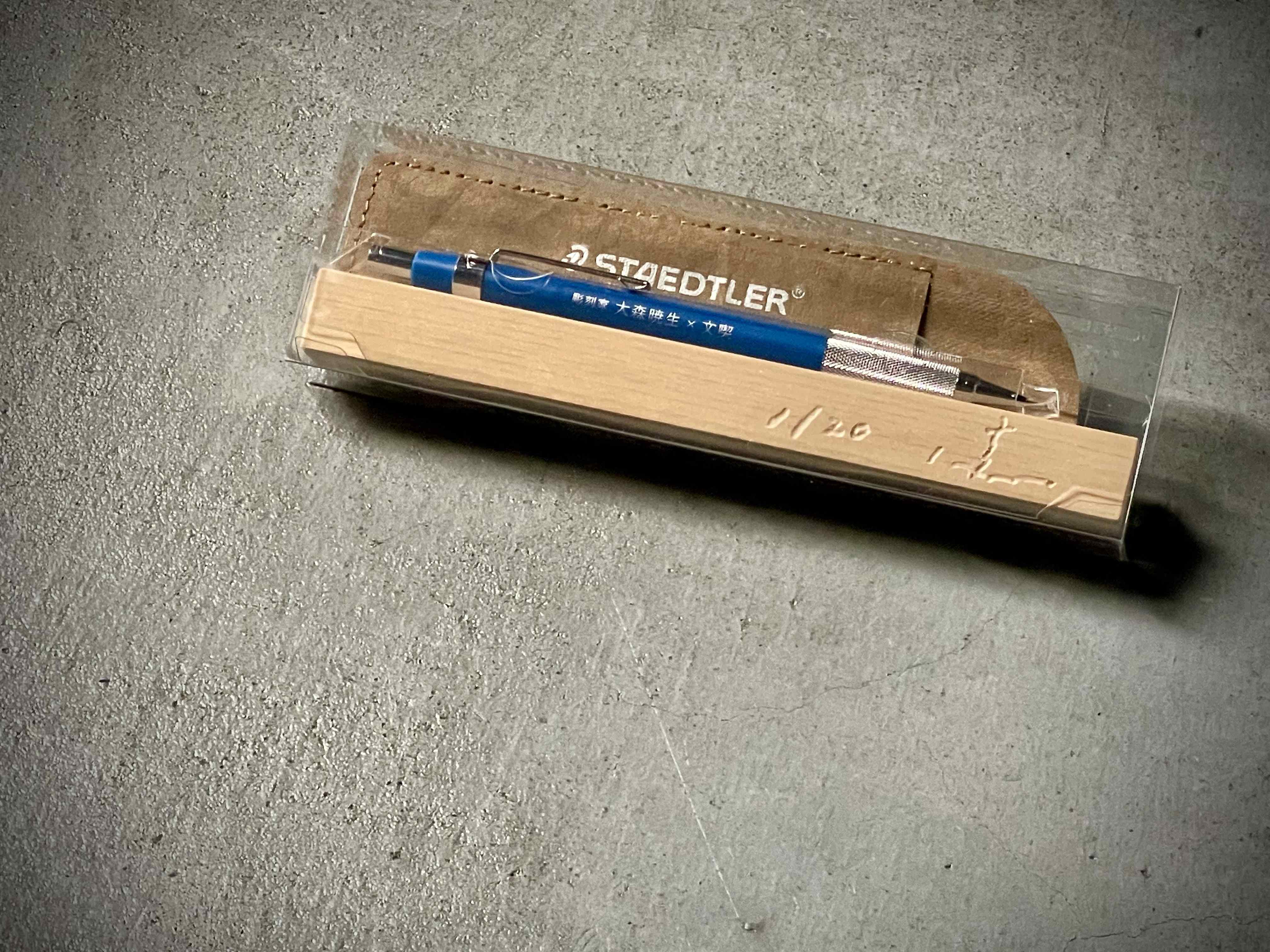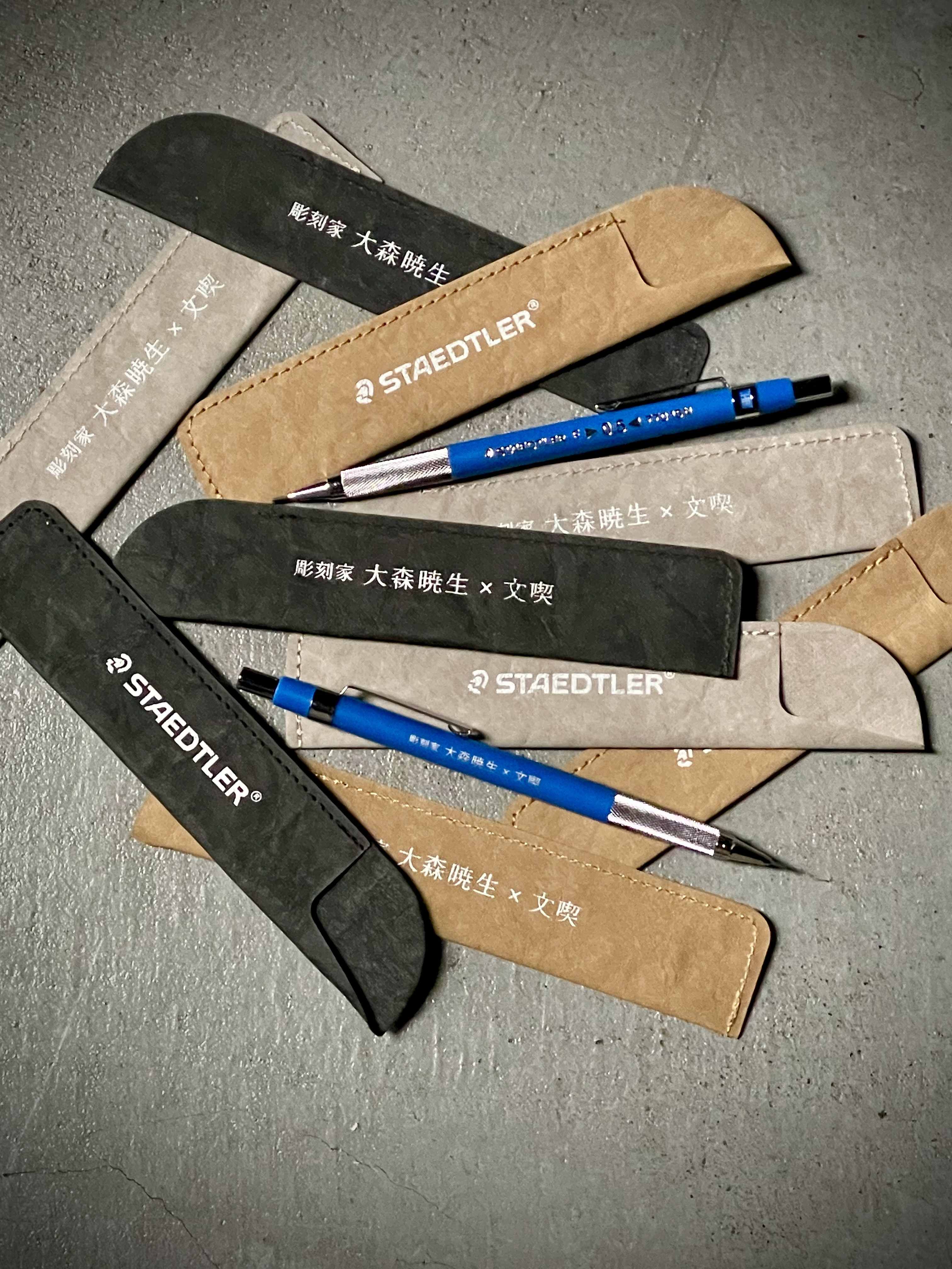 その中で、今回のグッズの目玉企画として「STAEDTLER × 文喫 × 彫刻家 大森暁生」トリプルコラボの「シャープペンシル+ウォッシャブルペーパーペンシース」セットを販売しております。